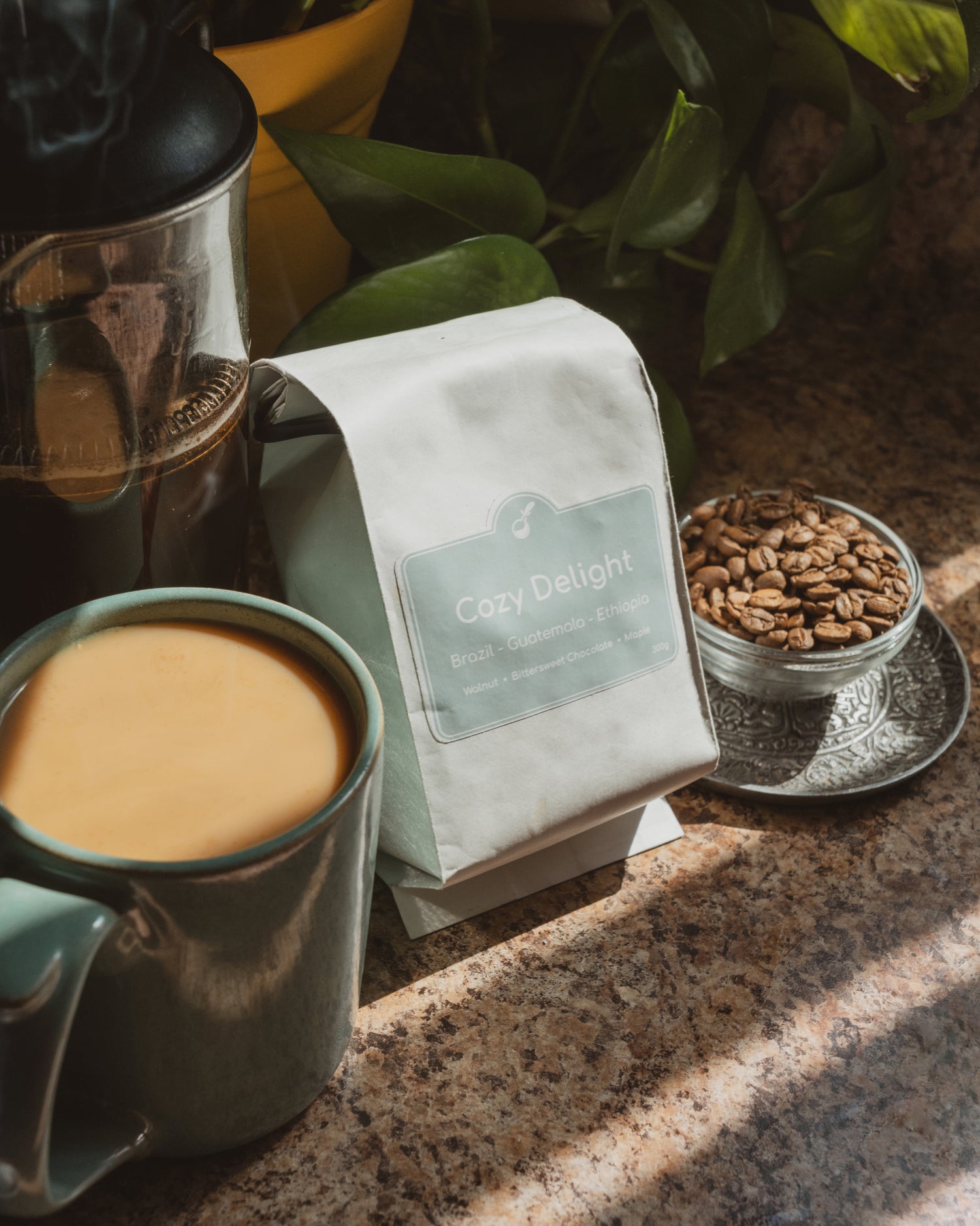 Summer is finally here and with it the shades, sun, and scenery has become the backdrop to enjoy our newest coffee, Cozy Delight. Just as the name implies, this delightful coffee is an exclusive blend and a one stop shop combination of flavors. Hailing from Brazil, Ethiopia, and Guatemala, the mix lends itself to an electrifying experience on the taste buds. The nuttiness of the walnuts becomes a backdrop of flavor and the perfect canvas to compliment the oh so familiar taste of bittersweet chocolate while maintaining a finishing sweetness of maple.